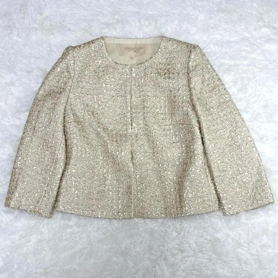 GIAMBATTISTA VALLI 잔바티스타 발리 트위드 자켓 골드 라메 이탈리아제 Made in Italy 고급 브랜드 여성용 노카라 포멀 파티 세레모니 고급 엘레강트 광택 코튼 실크