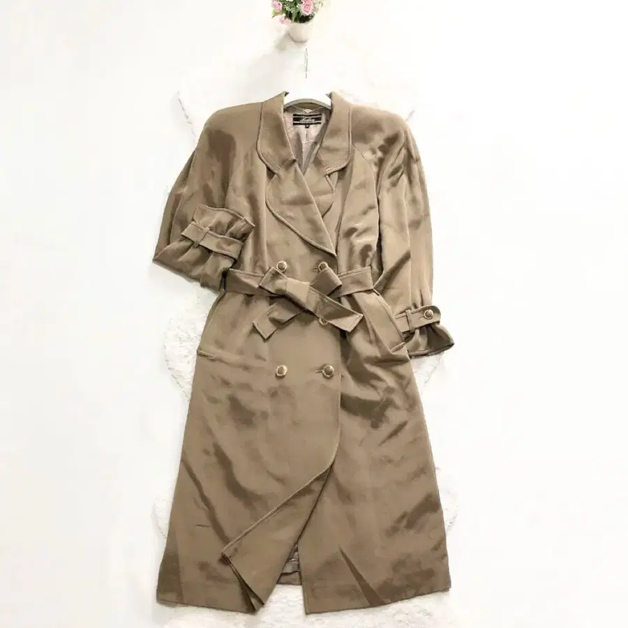 Leilian 레리안 실크 100% 벨티드 트렌치코트 롱 9