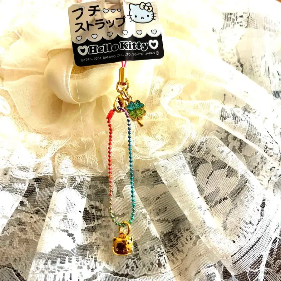레어 네잎 클로버 헬로키티 스트랩 컬러풀