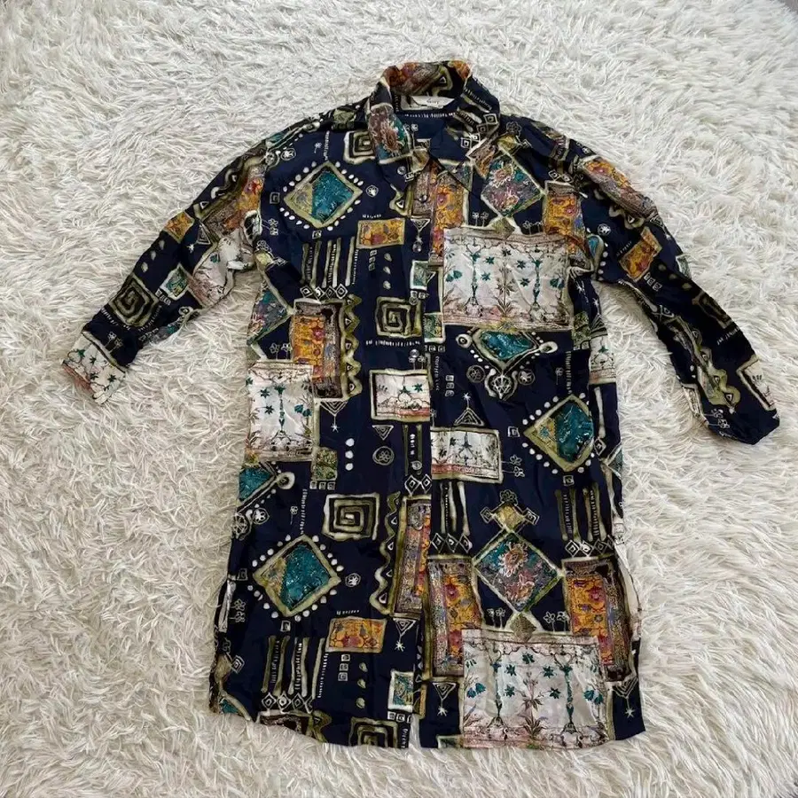 올 패턴 긴팔 롱 버튼 셔츠