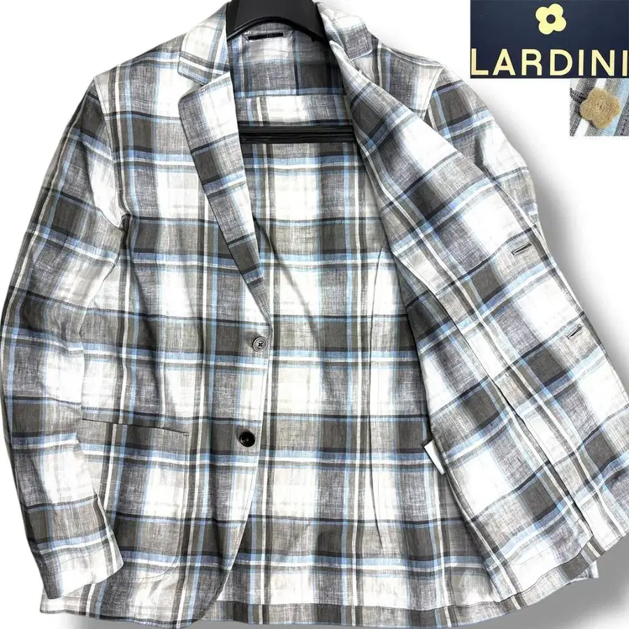 J3035 새상품급 라르디니 린넨 100% 체크 무늬 언라이닝 자켓 M