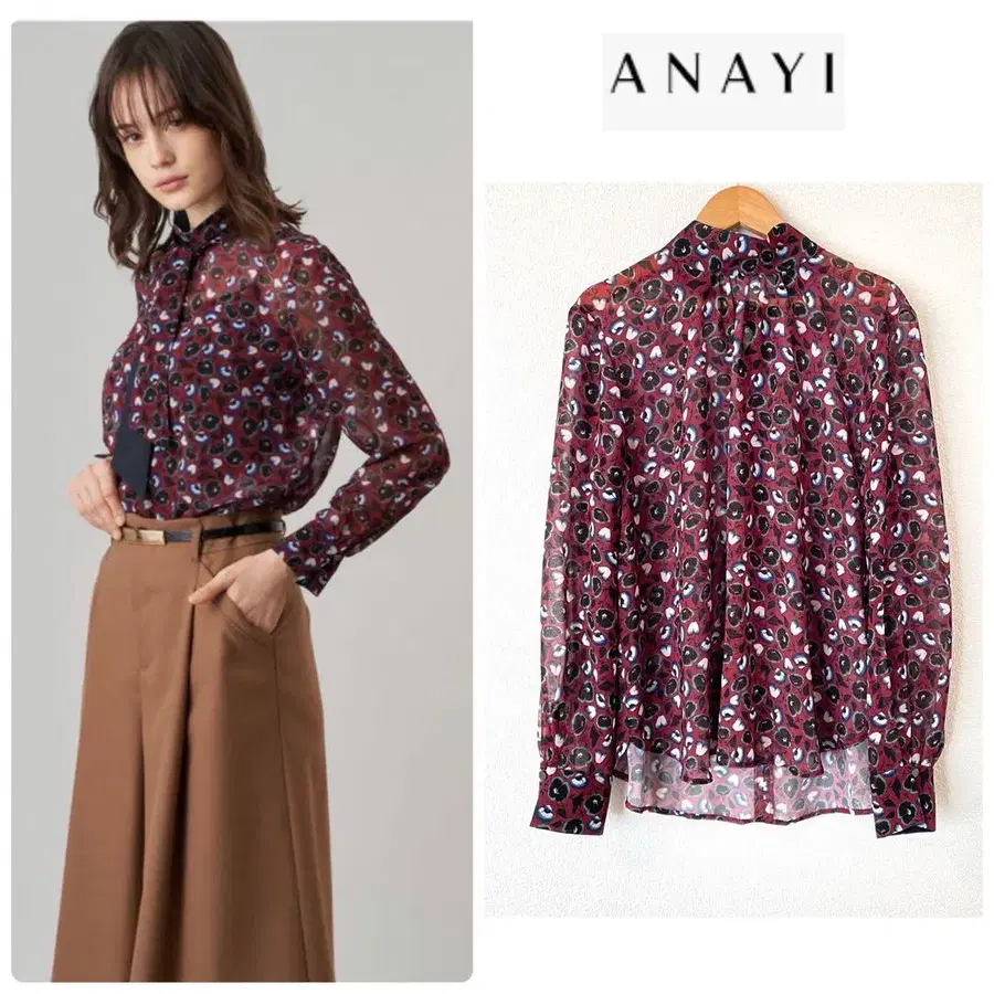 아나이 38 팬지 프린트 스카프넥 블라우스