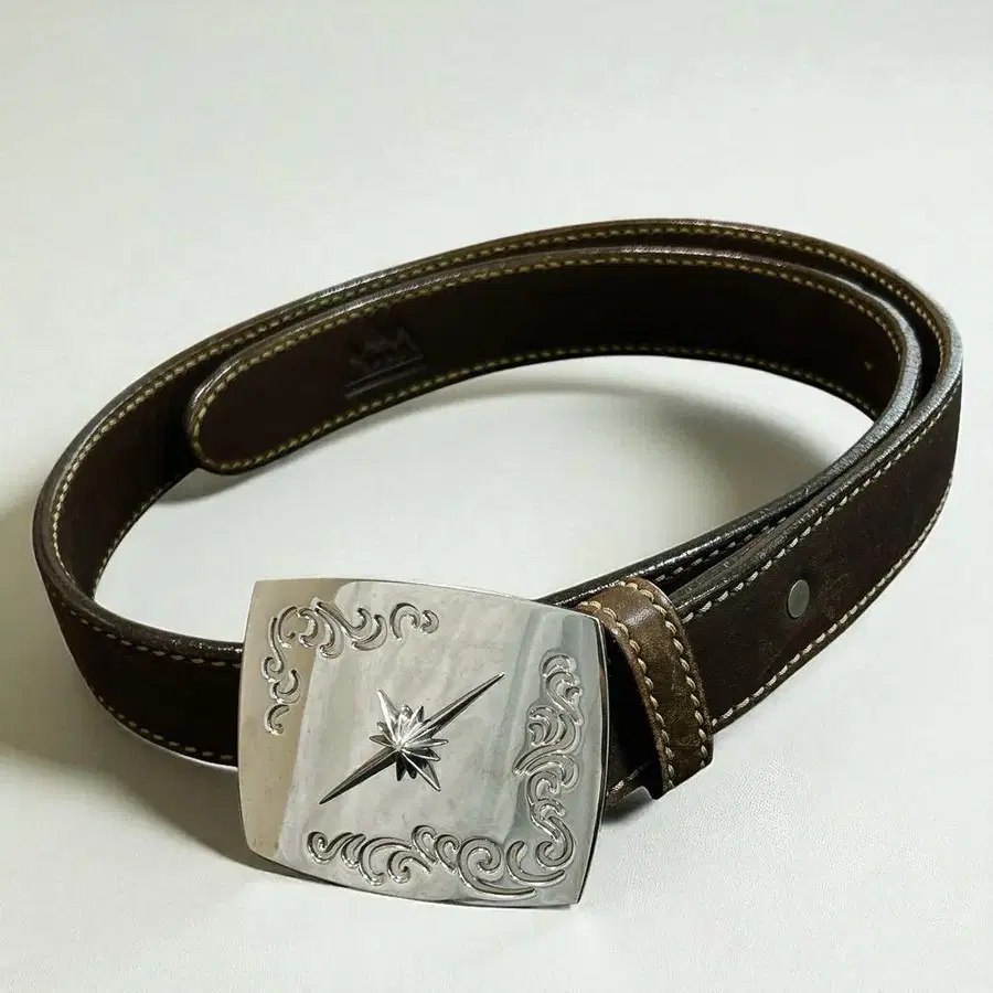 중앙에 스타 모티브, 그 주위에 당초 무늬 조각이 들어간 버클이 인상적입니다.