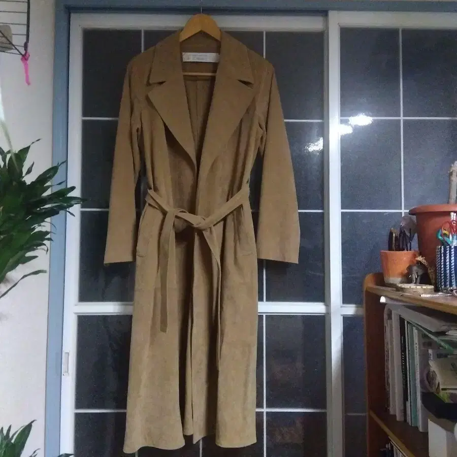 GREED INTERNATIONAL 베이지 스웨이드 롱 코트