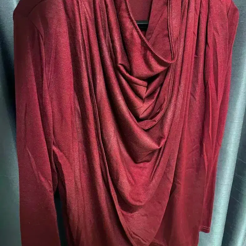 토네이도 마트 버건디 드레이프 넥 긴팔 티셔츠 라메 믹스