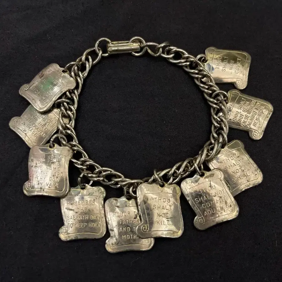 자동 번역되었어요. 원문보기10년 이상 전에 구제 의류점에서 구매한 플레이트가 달린 팔찌입니다.