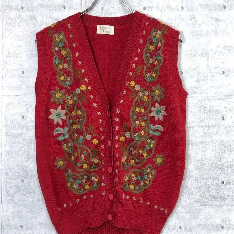 레트로 컨트리 구제 의류 노스탤지 플라워 자수 앞 버튼 니트 베스트