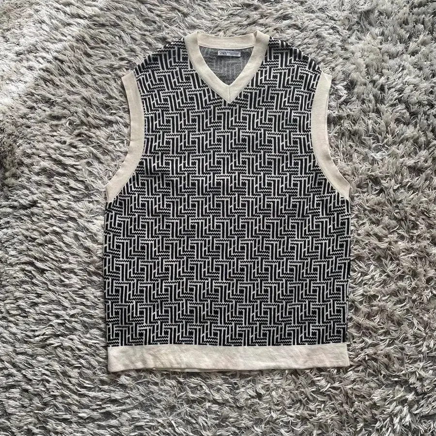 방문해 주셔서 감사합니다. 기하학 패턴의 V넥 슬리브리스 베스트입니다. - 브랜드: ZARA - 사이즈: L~XL (42~44) - 디자인: V넥, 슬리브리스, 기하학 패턴 - 컬러: 블랙 화이트 심플한 스타일링에 악센트로 딱 맞는 패턴 베스트입니다. 잘 부탁드립니다.