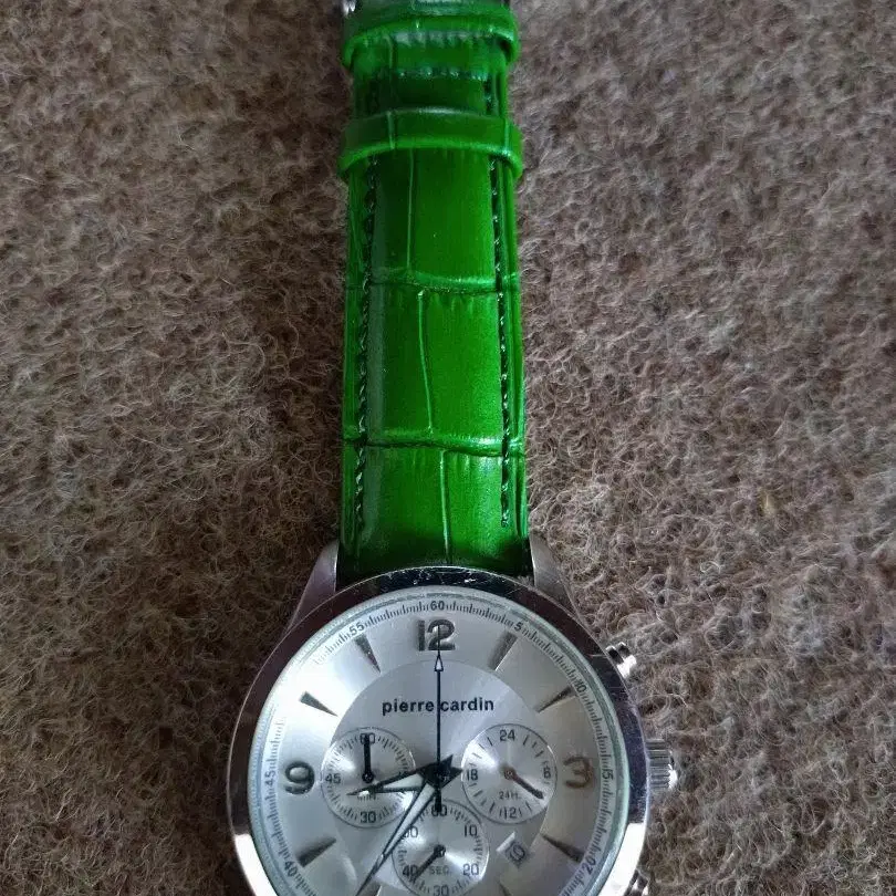 선명한 새상품 그린 가죽 벨트와 실버 다이얼이 특징인 아날로그 쿼츠 손목시계. 센터 크로노그래프 탑재 리셋 버튼으로 12시 위치로 돌아갑니다. 새상품 벨트는 한 번만 팔에 착용해 보았습니다. - 브랜드: pierre cardin - 색상: 그린 - 소재: 가죽 - 다이얼 색상: 실버 - 스타일: 아날로그 - 방수성: 방수 - 벨트 폭: 20mm 방문해 주셔서 감사합니다.