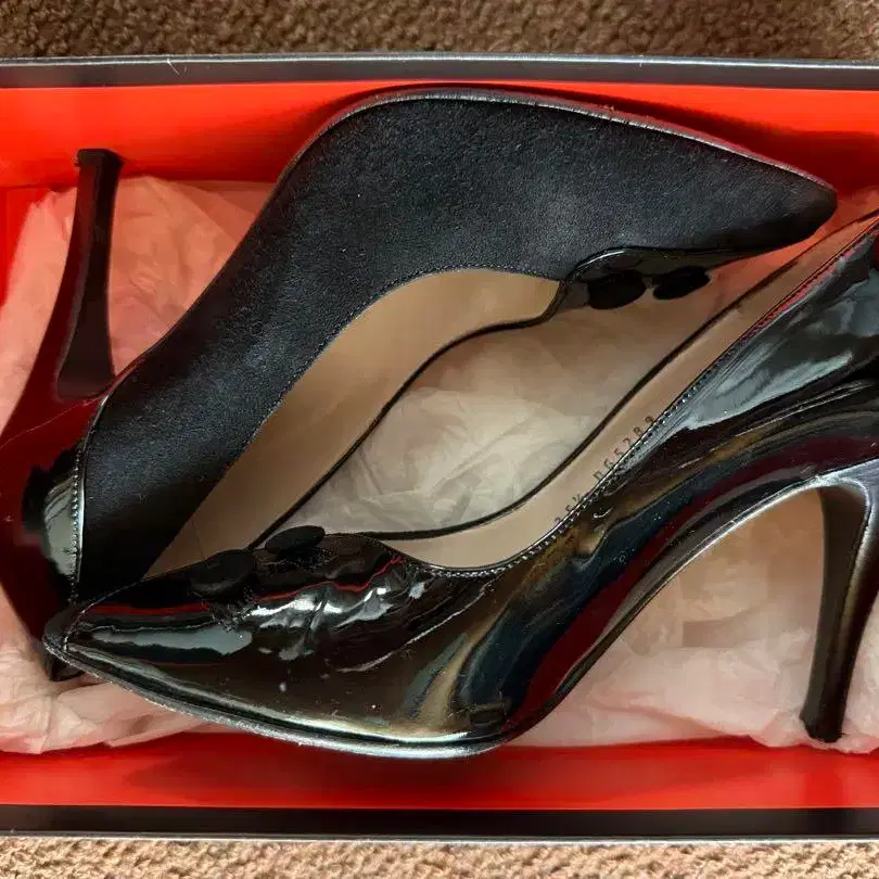 가격 인하 블루노마리 블랙 에나멜 스웨이드 하이힐 펌프스