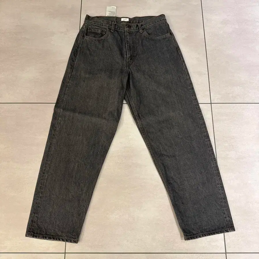 CIOTA 다크 그레이 와이드 테이퍼드 데님 팬츠