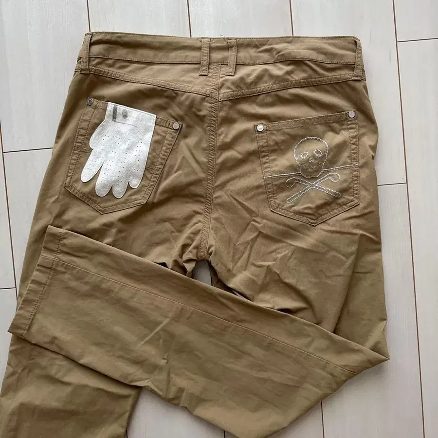 MARK & LONA 베이지 스컬 자수 골프 팬츠