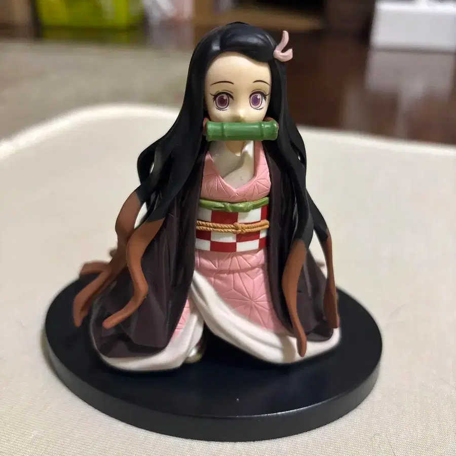 네즈코 피규어, 입에 대나무를 문 디자인이 특징. - 캐릭터명: 네즈코 - 스타일: 피규어 - 색상: 핑크 블랙 - 특징: 입에 대나무를 문 디자인 - 베이스: 블랙 받침대 포함 구매 후, 케이스에 넣어 장식했기 때문에 상자는 없습니다.