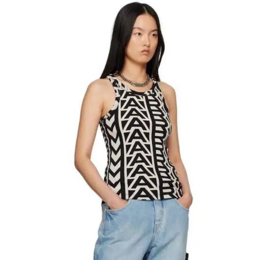 MARC JACOBS 탱크탑 블랙 화이트 올 로고 무늬 S
