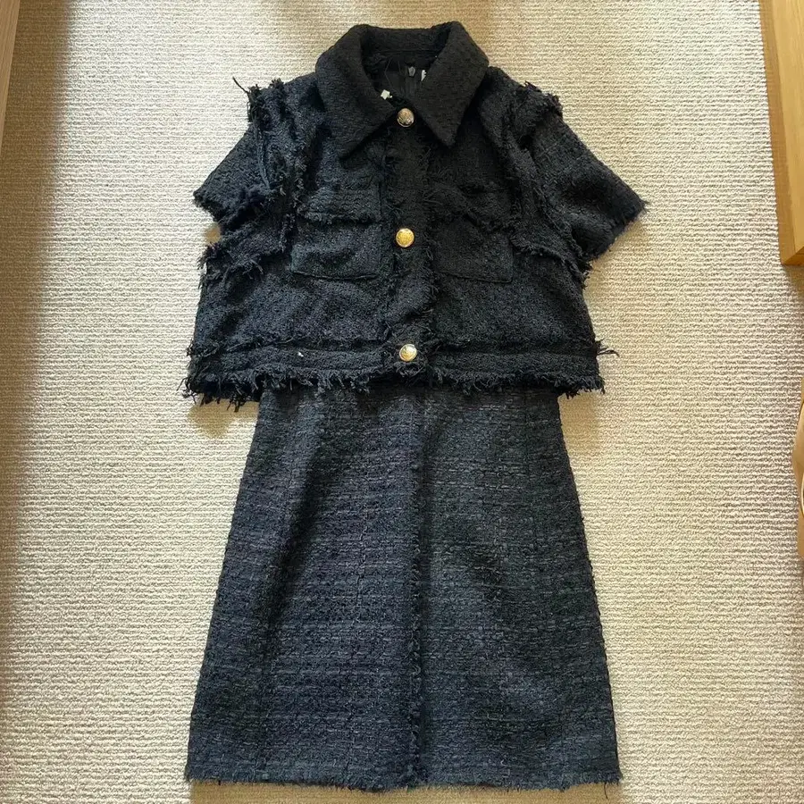 ZARA 트위드 블랙 미니 드레스와 베스트 세트입니다. XS 사이즈. 드레스는 1회 착용, 베스트는 미사용 택 포함입니다. 드레스 사이즈 기장 84cm 가슴 너비 40cm 어깨 너비 34cm - 브랜드: ZARA - 색상: 블랙 - 스타일: 미니 원피스 - 사이즈: XS 방문해 주셔서 감사합니다. 색상 - 블랙 계열 패턴 - 무지 실루엣 - 타이트 얼룩, 찢김, 냄새 등 - 없음