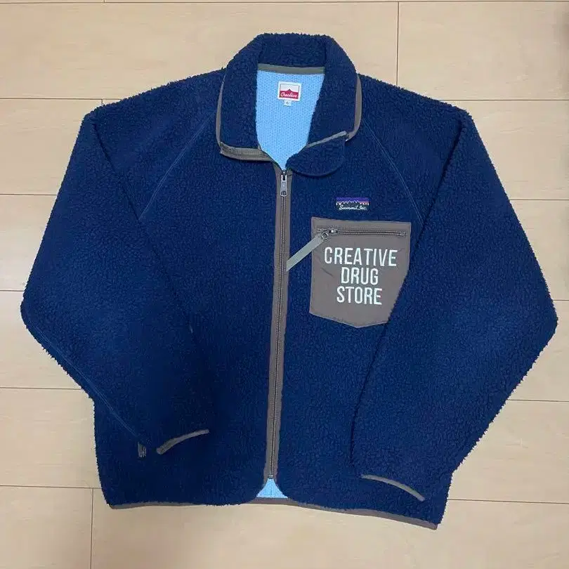Brand: CreativeDrugStore x SUMMIT Title: Boa Jacket Color: Navy Size: L 기장/64cm, 가슴 너비/55cm, 소매 길이/74cm CreativeDrugStore x SUMMIT 콜라보레이션 보아 자켓입니다. 구매처: CDS webshop