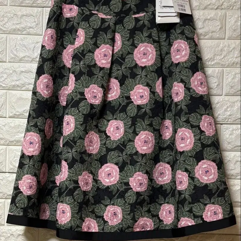Rene 루네 플레어 스커트 핑크와 그레이 장미 꽃무늬