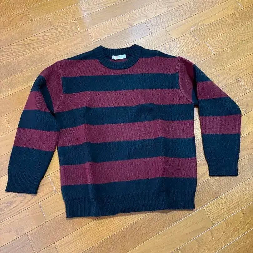 8 seconds XL 크루넥 니트 블랙 크림슨 보더