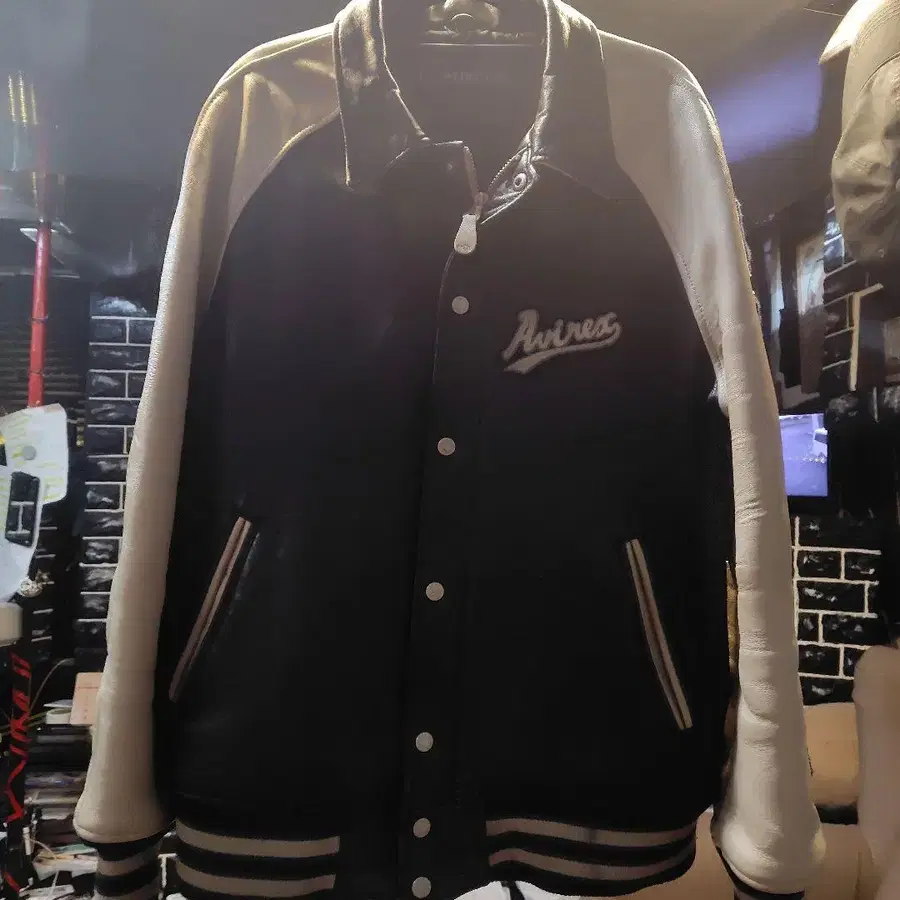 AVIREX 바시티 자켓 XL 블랙/아이보리