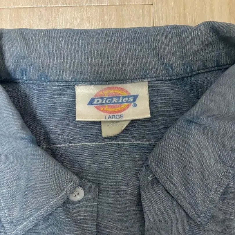 80s USA Dickies 샴브레이 셔츠 80년대경의 샴브레이에서는 드문 박스 실루엣이 채용되어 있어 기쁜 포인트입니다 ◎ [ SIZE ] L 어깨 너비 약 47cm 소매 길이 약 24cm 가슴 너비 약 61cm 기장 약 81.5cm [ Condition ] 약간의 데미지, 오염 부위가 있습니다. 평평하게 놓은 상태에서의 치수 측정으로 인해 오차가 발생할 수 있습니다.