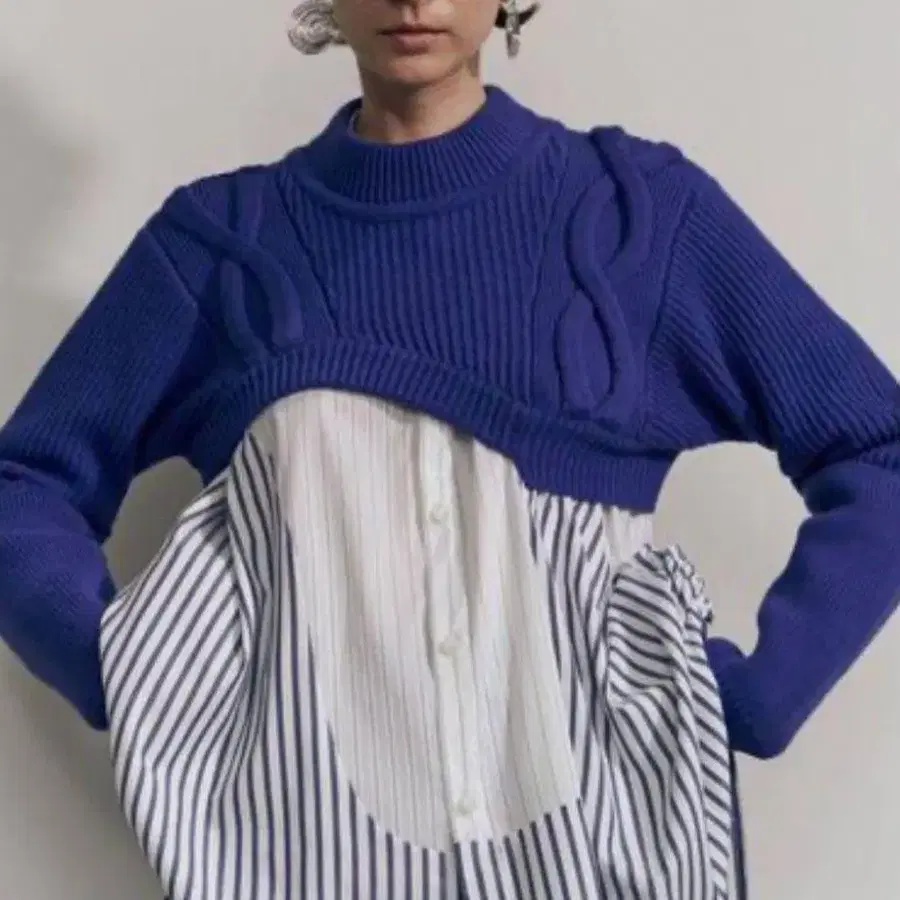 UN3D [택 포함] 케이블 숏 돌먼 니트 블루