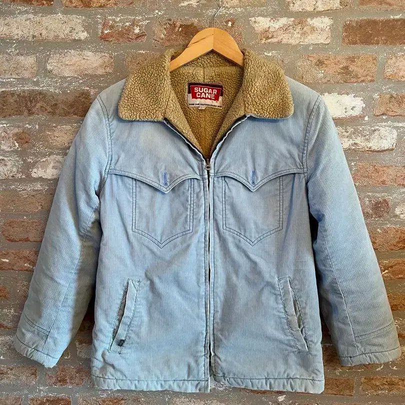 자동 번역되었어요. 원문보기라이트 블루 코듀로이 자켓, 카라 부착으로 캐주얼 스타일에 최적.