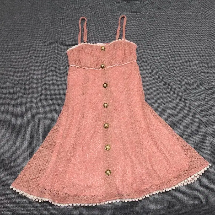 핑크색 실로 짠 원피스입니다. 가슴 부분과 밑단에는 하얀색 프릴과 레이스 트리밍이 되어 있습니다. 플라켓: 중앙에는 장식적인 버튼이 세로로 일렬로 배치되어 디자인의 악센트가 되고 있습니다. 실루엣: 허리 부분에 절개가 있으며, 스커트 부분은 밑단을 향해 약간 퍼지는 A라인 실루엣입니다. - 색상: 핑크 - 디자인: 슬리브리스, 버튼 있음, 레이스 트리밍 - 브랜드: LIZLISA 시착만 한 상품 방문해 주셔서 감사합니다. axes femme LIZLISA 코갸루 갸루히메 엔젤릭 프리티 마즈 MARS y2k 그런지 페어리 그런지 90년대 00년대 90s 00s 댄스 드레스계 GAL 블랙 골드 빈티지 히메갸루 헤이세이 갸루 양산 toalice 지뢰 히메 스타일 히메 로리 엔젤릭 프리티 베이비 스타즈 샤인 브라이트 coquette, 잉그, ROJITA 로지타, Heafher 핑키걸, OLIVE des OLIVE 등 러블리 스타일을 좋아하시는 분께 추천합니다 ♪