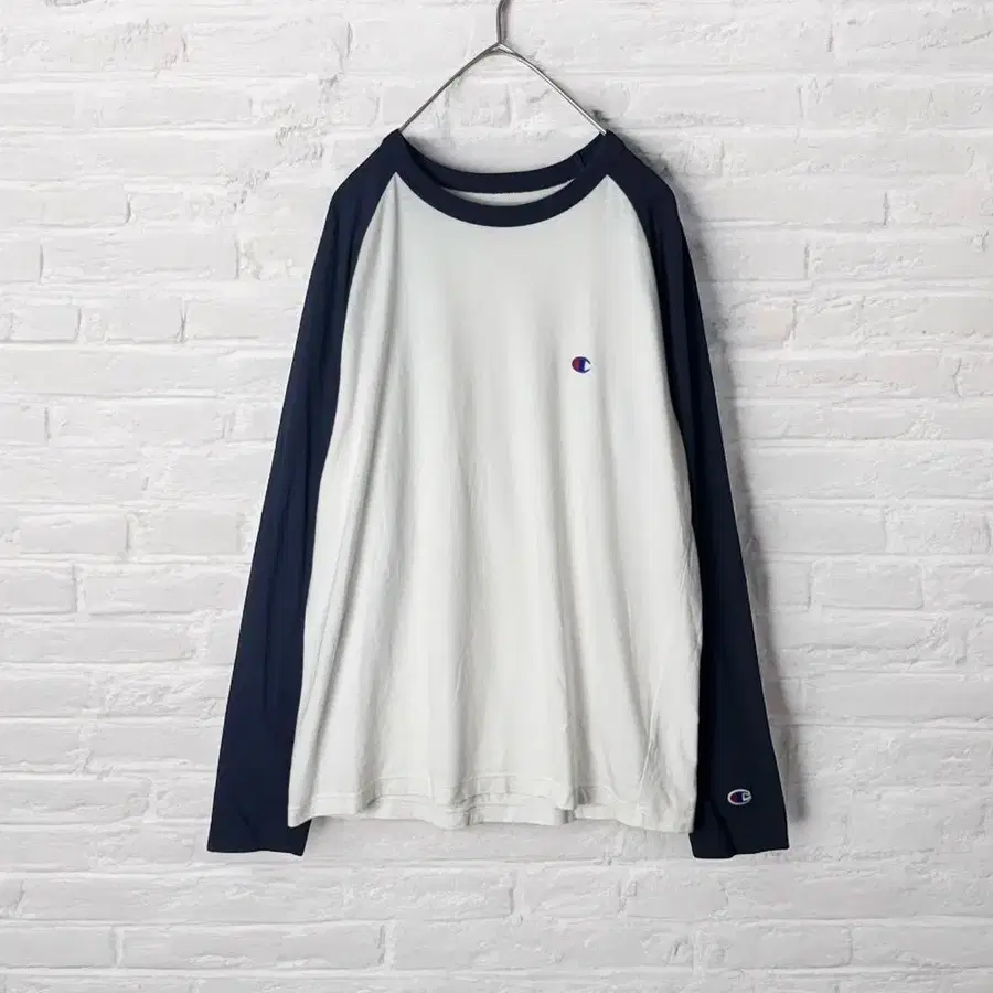 구제 의류 챔피온 래글런 T셔츠 롱 슬리브 M 화이트 네이비