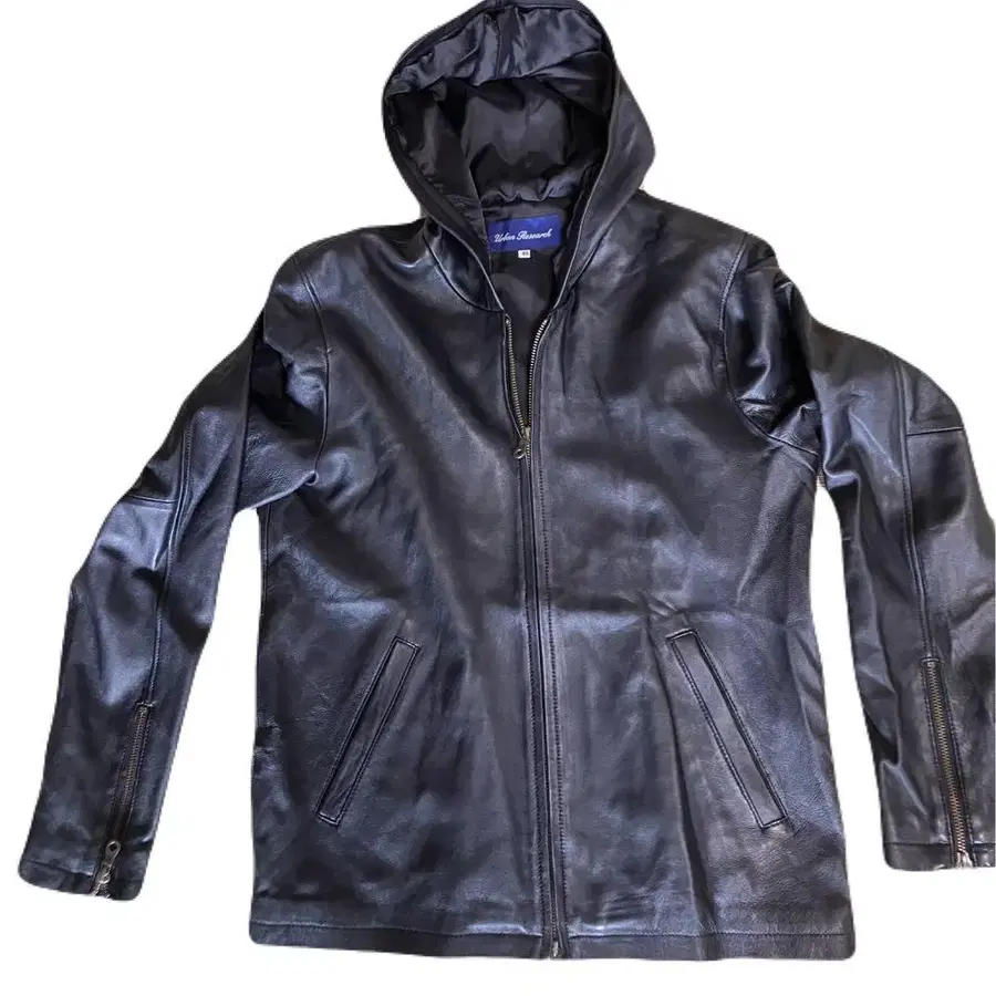 • And A 가죽 자켓 42 블랙 후드 집업 천연 가죽 리브