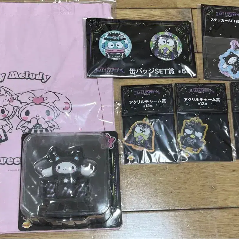 산리오 할로윈 복권 토트백 시나모롤 피규어 아크릴 참 3종 캔뱃지 세트 스티커 세트 낱개 판매 불가 즉시 구매 가능