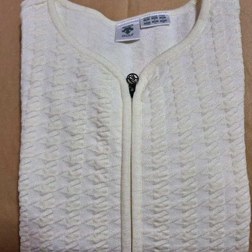 • DESCENTE 풀 집업 니트 자켓 화이트/베이지