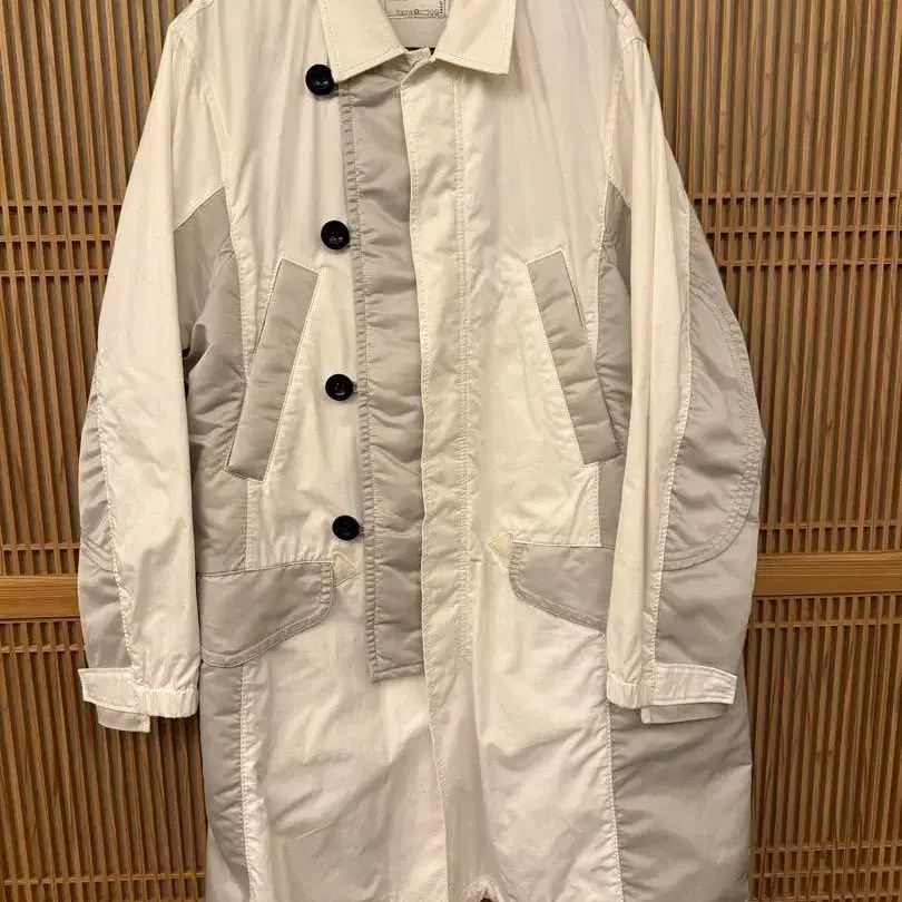 sacai 남성용 화이트 그레이 스텐카라 코트