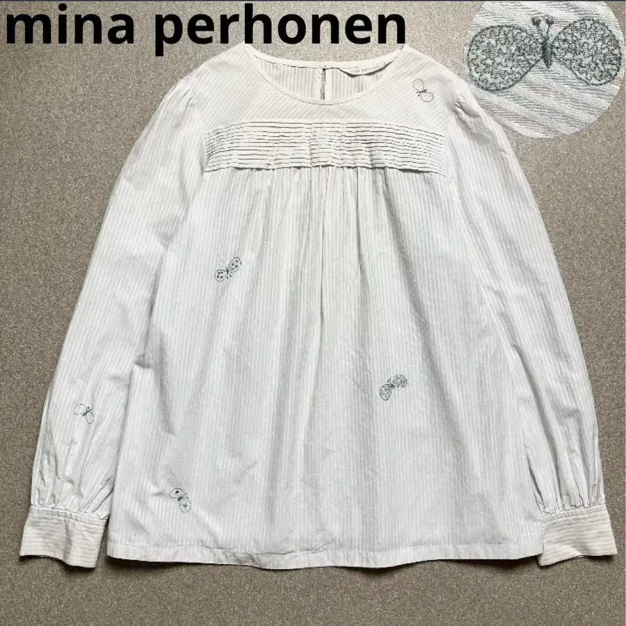 최근 미나 페르호넨 choucho 블라우스 자수 스트라이프 실크