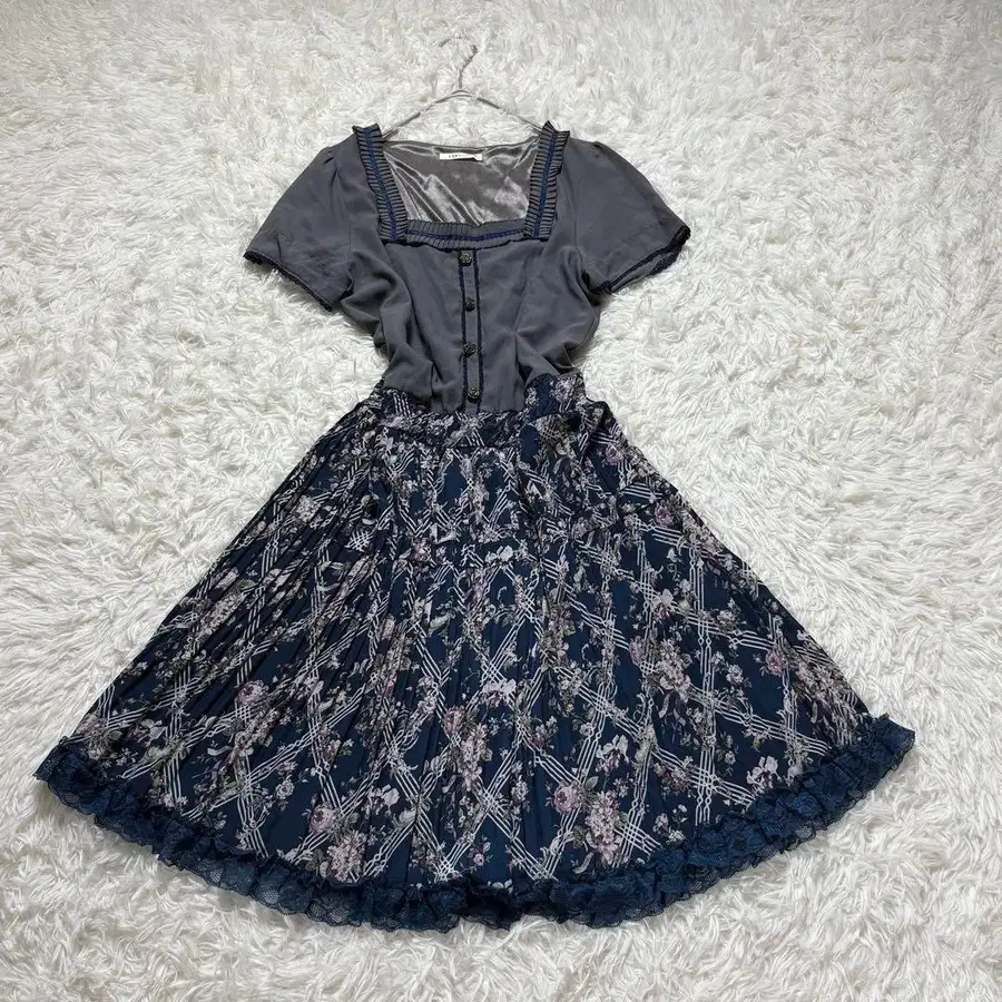 [ 포인트 ] axes femme 원피스 골드 버튼 꽃무늬 플리츠 스커트 레이스 프릴 귀여움