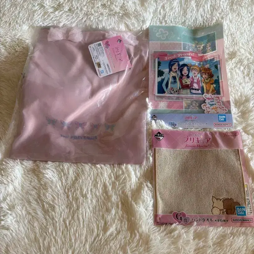 프리큐어 1번 복권 상품입니다^_^ D상 튤 토트백 I상 스테이셔너리 컬렉션 프레쉬 프리큐어 G상 핸드 타월 미개봉 새상품입니다^_^ - 색상: 핑크 - 디자인: 나비 자수 - 브랜드: 반다이 - 캐릭터명: 프리큐어 - 부속품: 방문해 주셔서 감사합니다.
