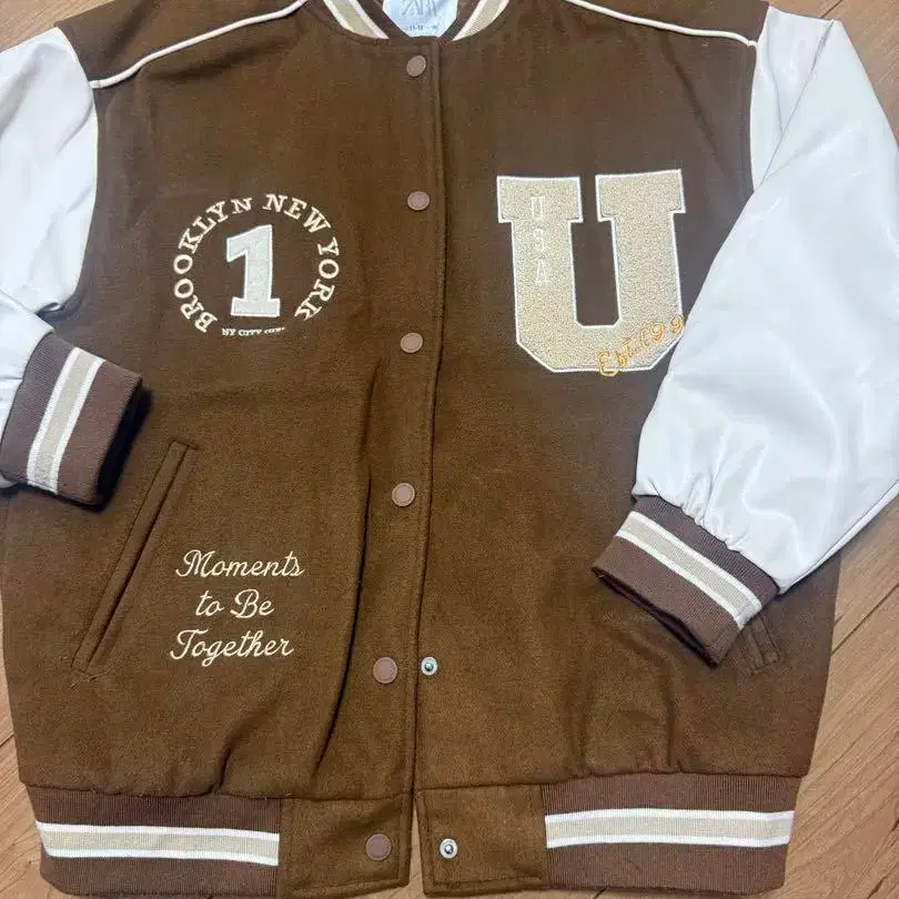 브라운 바시티 자켓, 자수 디테일로 스타일리시합니다. - 브랜드: ZARA - 사이즈: 11-12세 152 - 색상: 브라운 - 디자인: 스냅 버튼, 자수 - 특징: 스트라이프 리브 - 메시지: Moments to Be Together 방문해 주셔서 감사합니다.