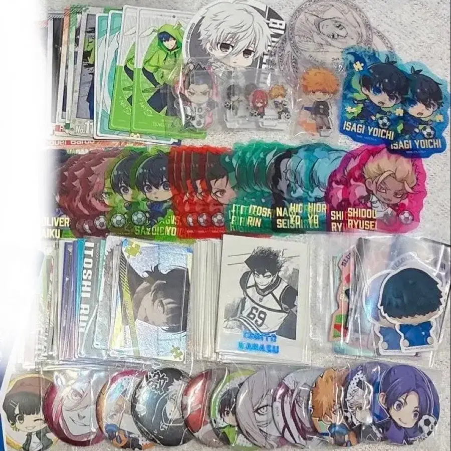 블루 록 굿즈 묶음 판매입니다. 옛날 물건도 있어 약간의 마찰이나 얼룩이 있는 것이 있습니다. 낱개 판매, 가격 인하 상담 OK. 즉시 구매 OK. 스티커, 다이컷 클리어 스티커, 캔뱃지, 아크릴 스탠드, 코스터 이치기 요이치, 바치라 메구루, 치기리 효마, 쿠니가미 렌스케, 바로우 쇼에이, 나기 세이시로, 미카게 레오 etc -