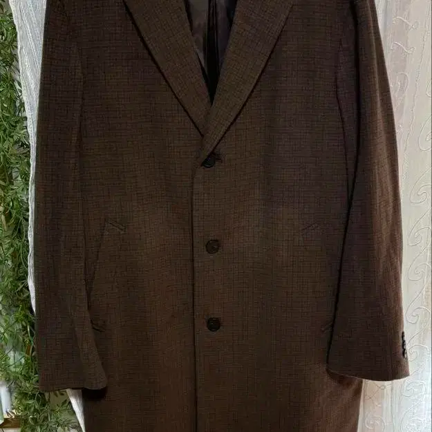 유니클로 캐시미어 혼방 울 코트 브라운 체크 XL