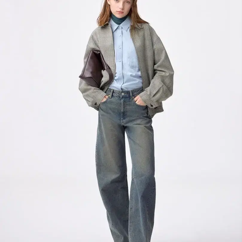빈티지풍 세미 와이드 배럴 실루엣 데님 팬츠