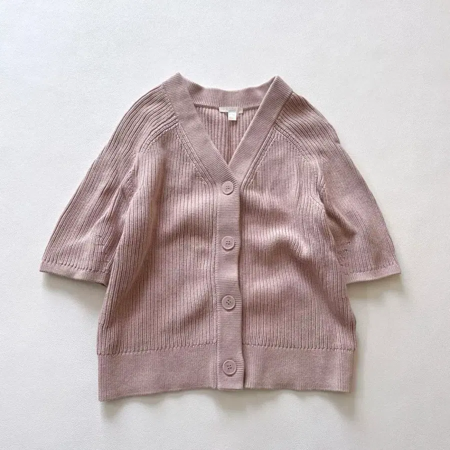 COS 코튼 니트 반팔 가디건 V넥 코스 핑크