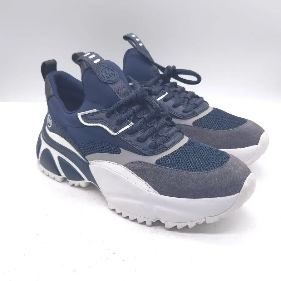 네이비와 화이트의 하이테크 스니커즈, 통굽 밑창으로 스타일리시합니다. - 색상: 네이비/화이트 - 디자인: 하이테크 스니커즈 - 소재: 메쉬/스웨이드 - 특징: 통굽 밑창 - 로고: MK 로고 - 사이즈: 27.5 / US 9.5 방문해 주셔서 감사합니다.
