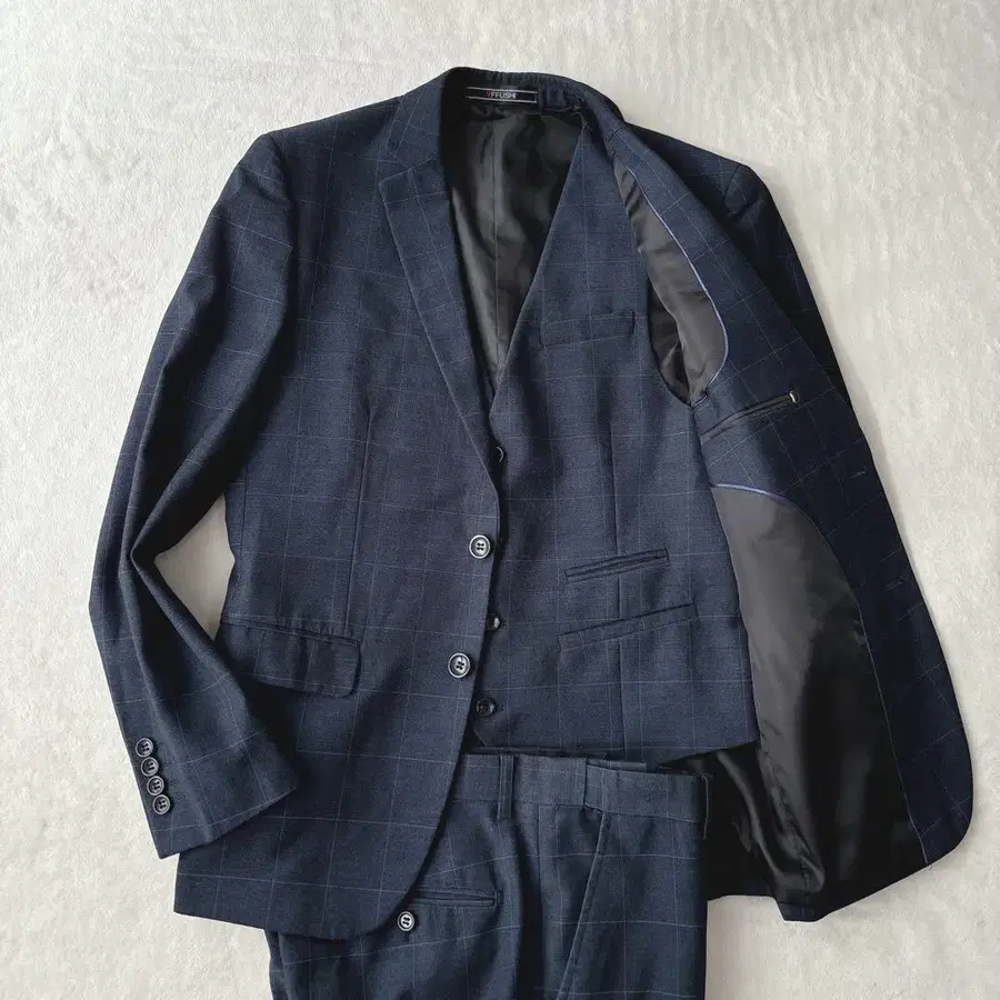 [ 새상품급 ] YFFUSHI 쓰리피스 수트 네이비 체크 무늬 남성복