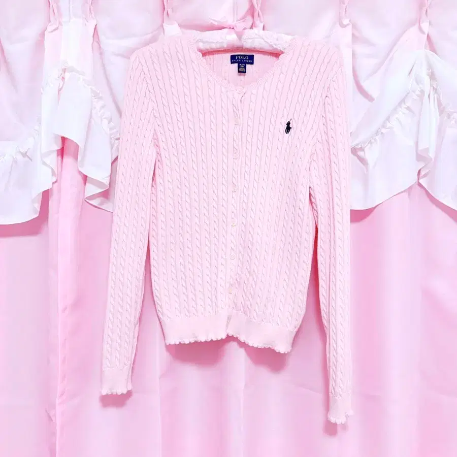 폴로 랄프 로렌 스캘럽 핑크 가디건