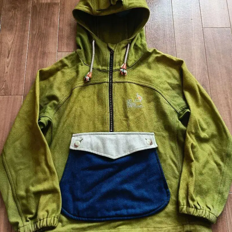 쓰면 공룡 모양이 되는 후드 부착 올리브 그린 후드티입니다. 큰 포켓은 2개로 나뉘어 있으며, 좌우에서 손을 넣을 수도 있고, 덮개 달린 포켓은 장지갑과 스마트폰이 여유롭게 들어가므로, 다가오는 계절에 편의점에 갈 때 위에서 뒤집어쓰면 바로 외출할 수 있어 매우 편리합니다. 일광화상 등이 있지만, 사진과 같이 디자인으로서 눈에 띄지 않는 범위라고 생각합니다. - 브랜드: go slow caravan - 색상: 올리브 그린/네이비 - 디자인: 후드 부착, 지퍼식, 포켓 부착 - 특징: 자수 로고 부착 - 소매: 밴딩 처리 방문해 주셔서 감사합니다.