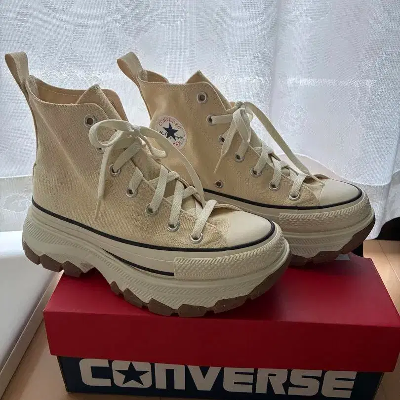 CONVERSE 아이보리 하이컷 스니커즈 통굽 24cm