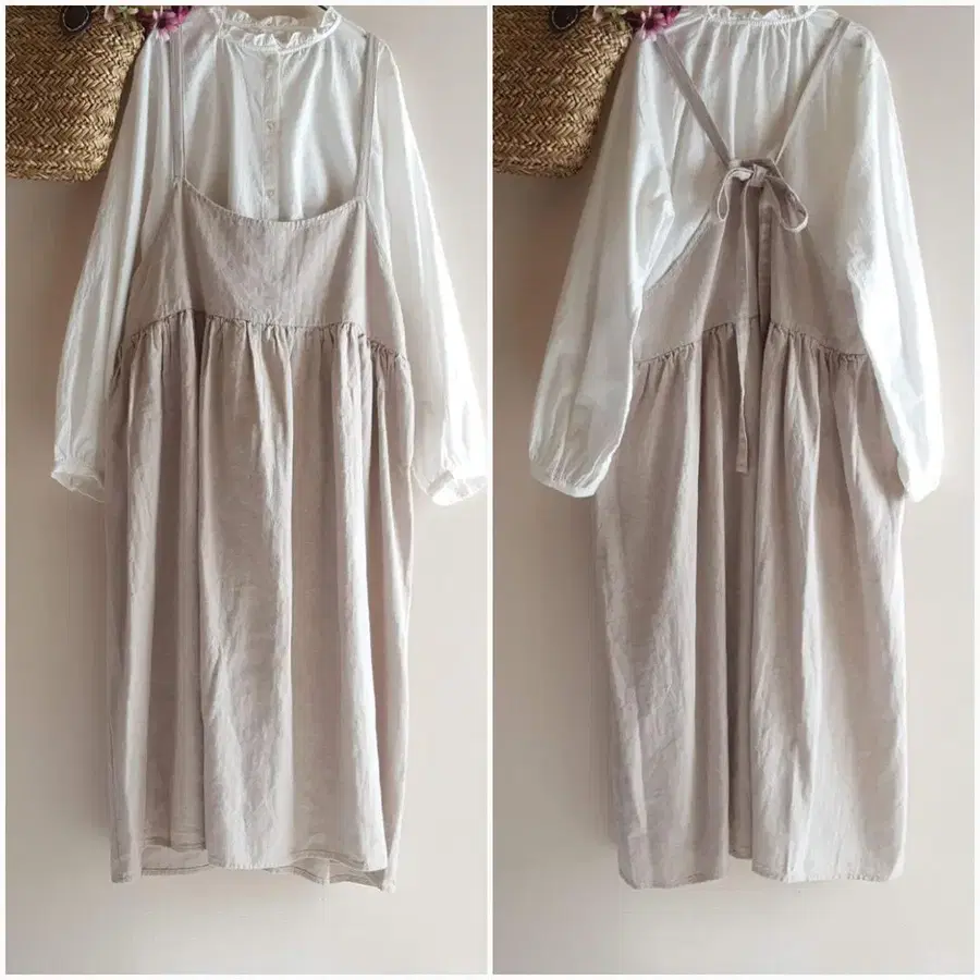 뒷면의 리본이 귀여운 에이프런 원피스입니다.