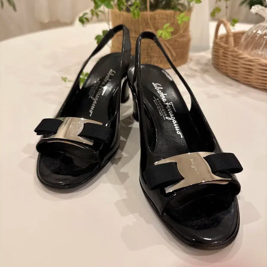 페라가모 상품입니다. 에나멜 마감의 블랙 오픈토 샌들, 실버 버클이 특징입니다. - 색상: 블랙 - 디자인: 오픈토, 슬링백 - 장식: 실버 버클 - 소재: 에나멜 마감 - 스타일: 캐주얼, 포멀 겸용 방문해 주셔서 감사합니다.