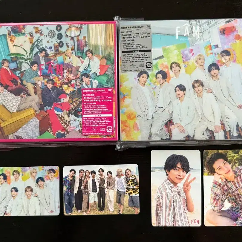 방문해 주셔서 감사합니다. timelesz 1st 앨범 [ FAM ] CD와 DVD 세트입니다. 시리얼 카드, 플레이리스트 카드는 동봉되어 있지 않습니다. 카드를 꺼내기 위해 한 번 개봉했지만, CD, DVD, 사진집은 만지지 않았습니다. 사진의 특전 트레이딩 카드 4장과 오리지널 스티커 A, B를 함께 드립니다. [ 상품 설명 ] 기념비적인 새 체제 timelesz 첫 오리지널 앨범 [ FAM ] (읽기: 팜). [ 새롭게 맞이한 동료, 항상 지지해 주는 secondz 여러분, timelesz와 관련된 모든 사람들, 모두 함께 큰 '가족' ] 이라는 염원을 담은 앨범은 내용도 풍성하게 담았습니다! 가족 = 다양한 인생의 교차라는 의미로, 다양한 음악성과 장면을 J-pop으로 녹여낸 공감성이 높은 13곡을 수록했습니다. 초회 한정판 A에는 '첫 가족 여행'을 컨셉으로 하와이에서 촬영한 [ Rock this Party ] Music Video와 스페셜 버라이어티 영상에 더해, 신곡 [ 원앤온리 ] Music Video도 수록했습니다. 초회 한정판 B에는 Netflix에서 방송되는 타입별 최종 심사의 비하인드 영상을 대볼륨으로 수록했습니다. 또한 [ Rock this Party ]의 Dance Video와 새 체제 첫 앨범 제작 메이킹 다큐멘터리를 수록했습니다. 그 외 봉입 특전 등도 풍성하게 담긴 새로운 출발을 알리는 새 체제 1st 앨범 [ FAM ] . 기대해 주세요! ■ 사양 삼방배 슬리브 사양