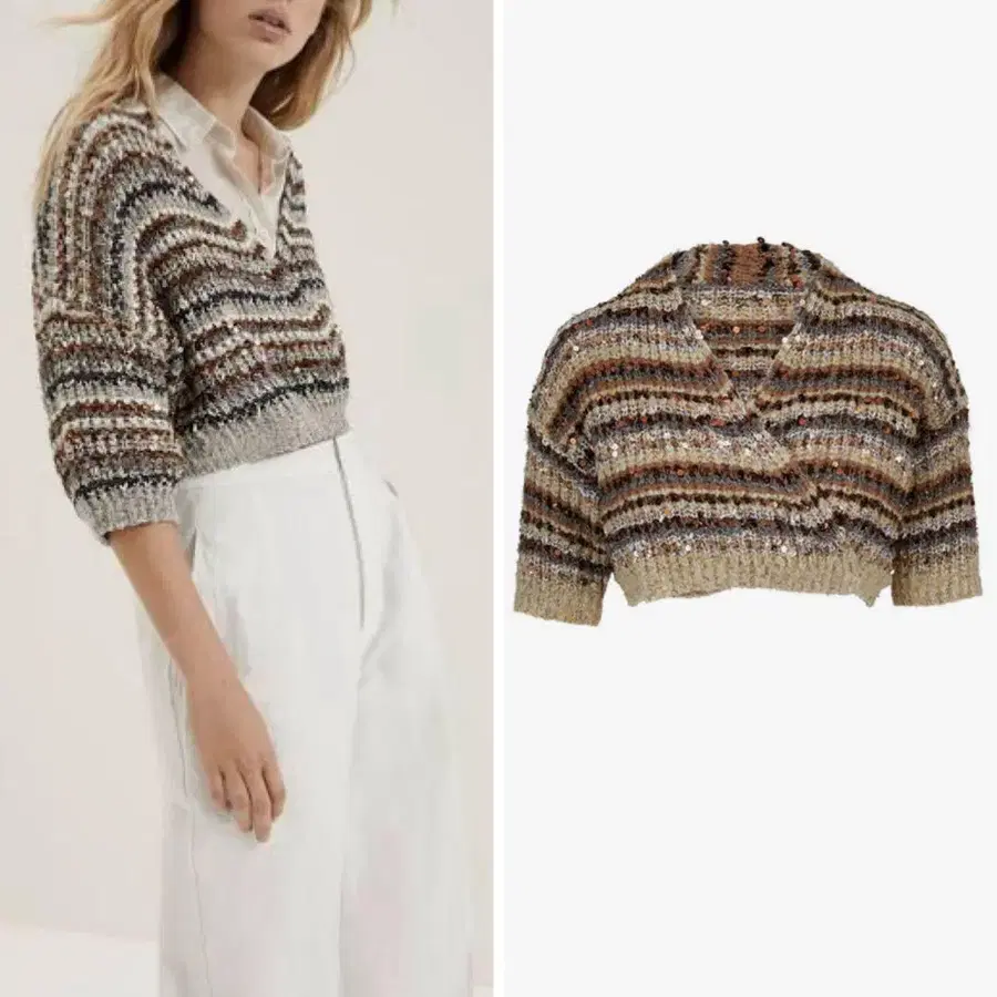 브루넬로쿠치넬리 스팽글 장식 숏 가디건