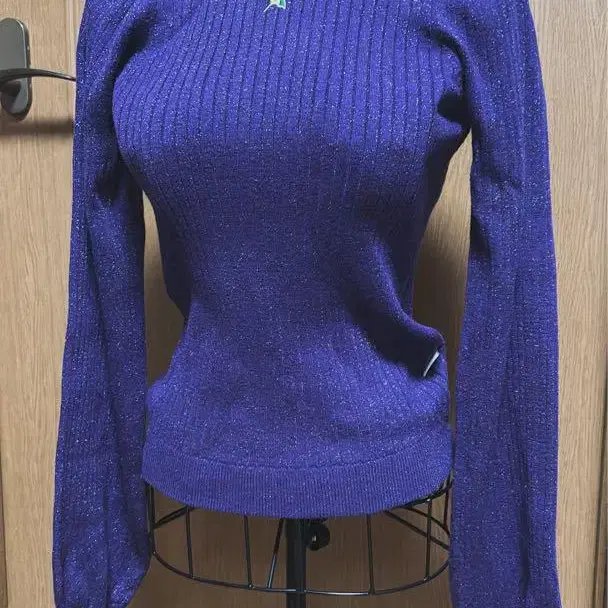 1회 착용했습니다. 홈 클리닝 완료했습니다. 쥬에티 아놀드 파마 콜라보 상품입니다. 전체적으로 블루 실버 계열 라메가 들어가 있습니다. 색은 짙은 보라색이며 사진 5장, 6장 사진이 현물과 비슷한 색감입니다. 토르소 마네킹은 M 사이즈입니다.
